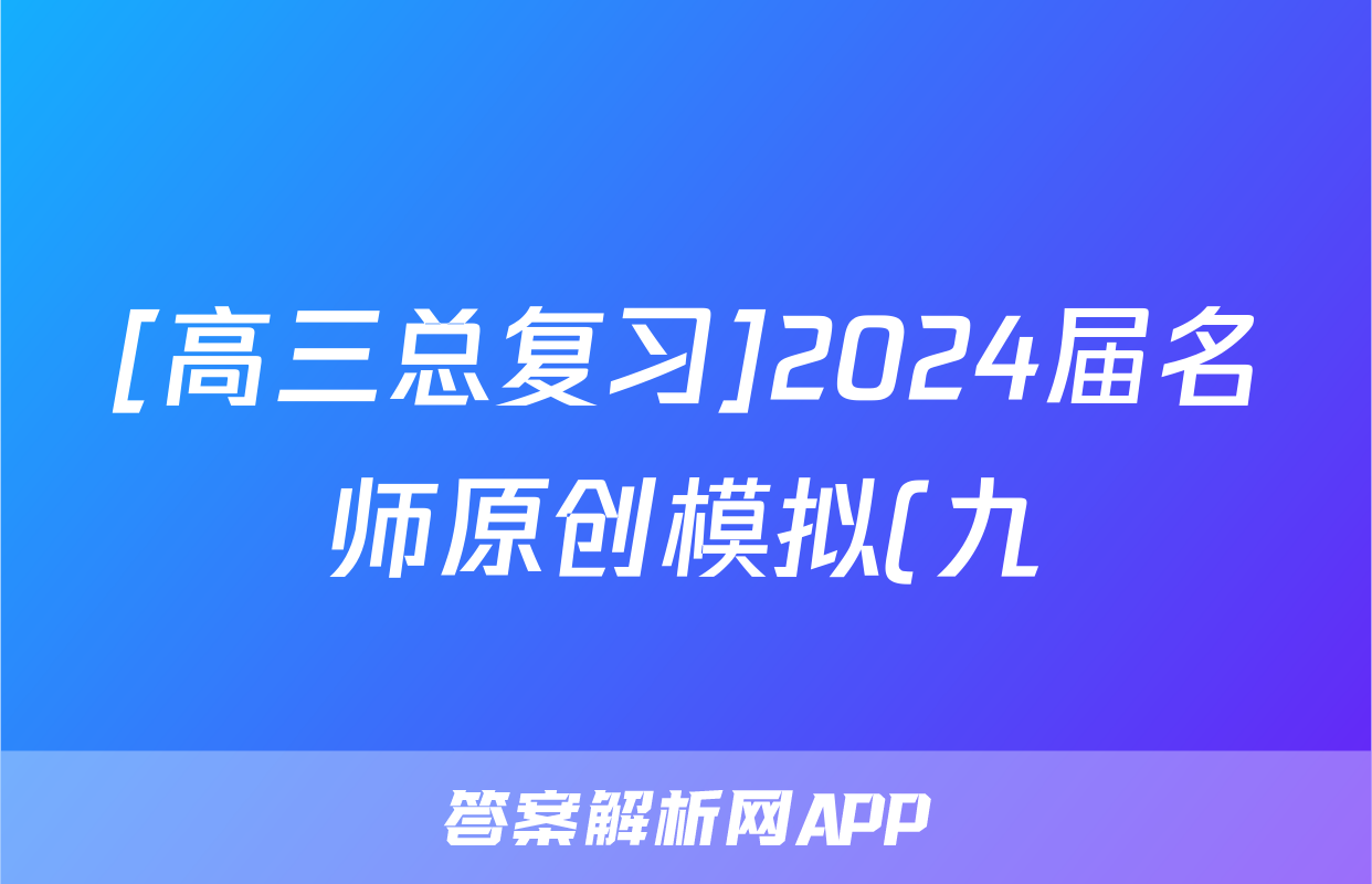 [高三总复习]2024届名师原创模拟(九)9化学(ZS4)试题正在持续更新,目前2025-2026九师联盟答案网为大家整理了相关试题及答案,供大家查缺补漏,高效提升成绩。