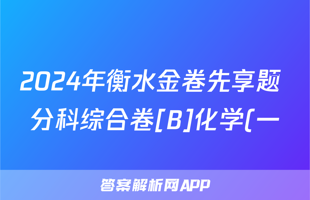 2024年衡水金卷先享题 分科综合卷[B]化学(一)1答案正在持续更新,目前2025-2026九师联盟答案网为大家整理了相关试题及答案,供大家查缺补漏,高效提升成绩。