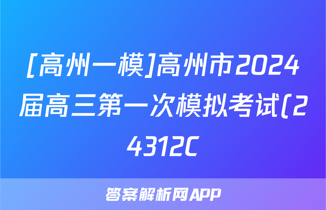 [高州一模]高州市2024届高三第一次模拟考试(24312C)数学答案正在持续更新,目前2025-2026九师联盟答案网为大家整理了相关试题及答案,供大家查缺补漏,高效提升成绩。