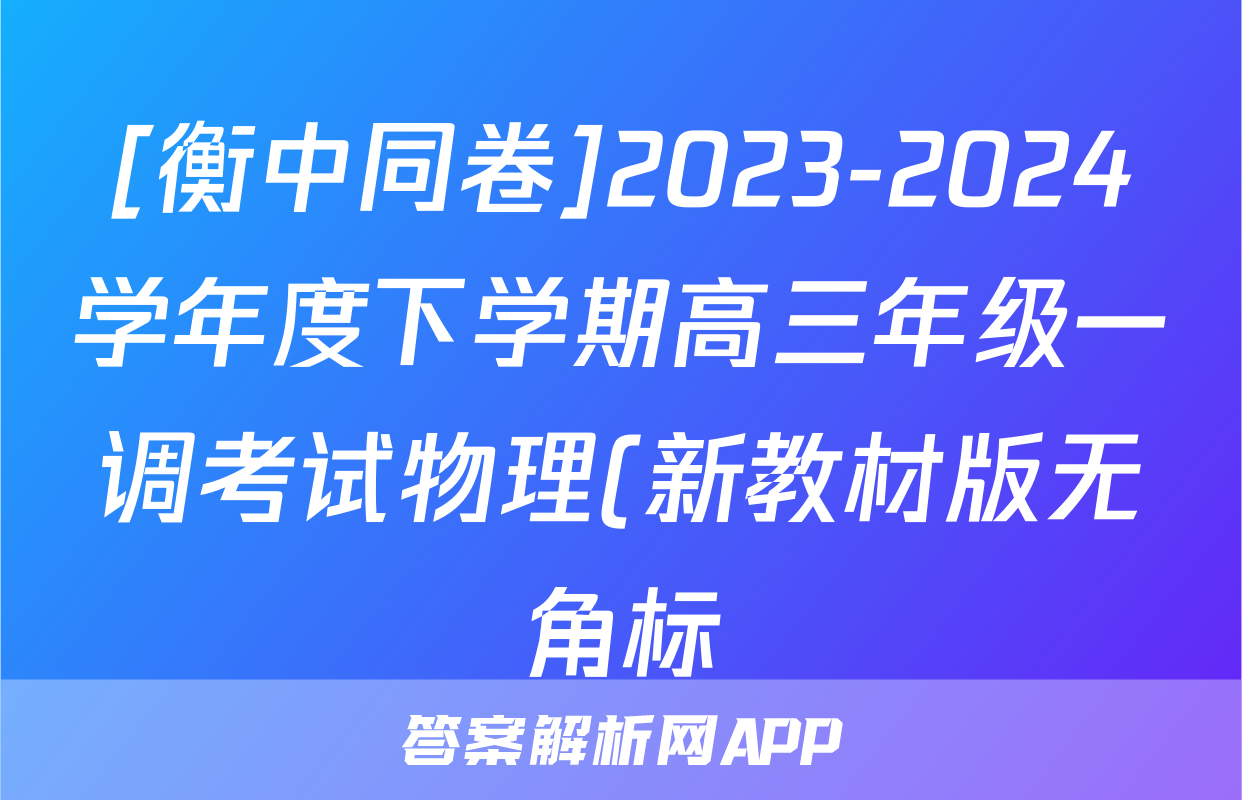 [衡中同卷]2023-2024学年度下学期高三年级一调考试物理(新教材版无角标)答案正在持续更新,目前2025-2026九师联盟答案网为大家整理了相关试题及答案,供大家查缺补漏,高效提升成绩。