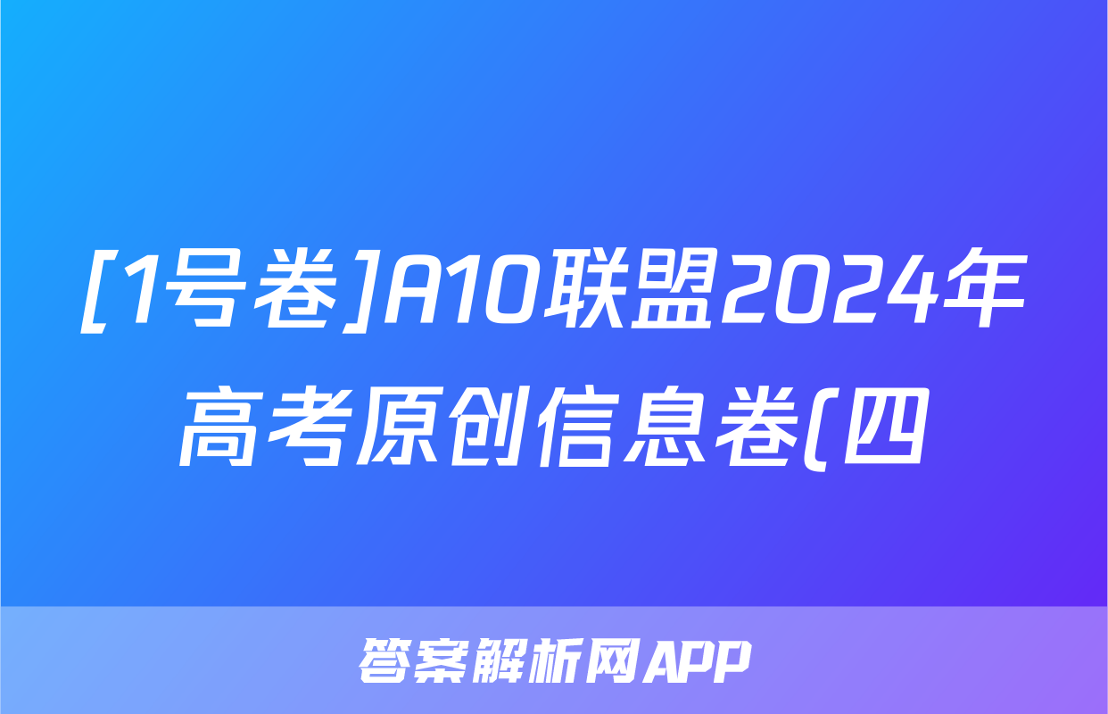 [1号卷]A10联盟2024年高考原创信息卷(四)4化学答案正在持续更新,目前2025-2026九师联盟答案网为大家整理了相关试题及答案,供大家查缺补漏,高效提升成绩。