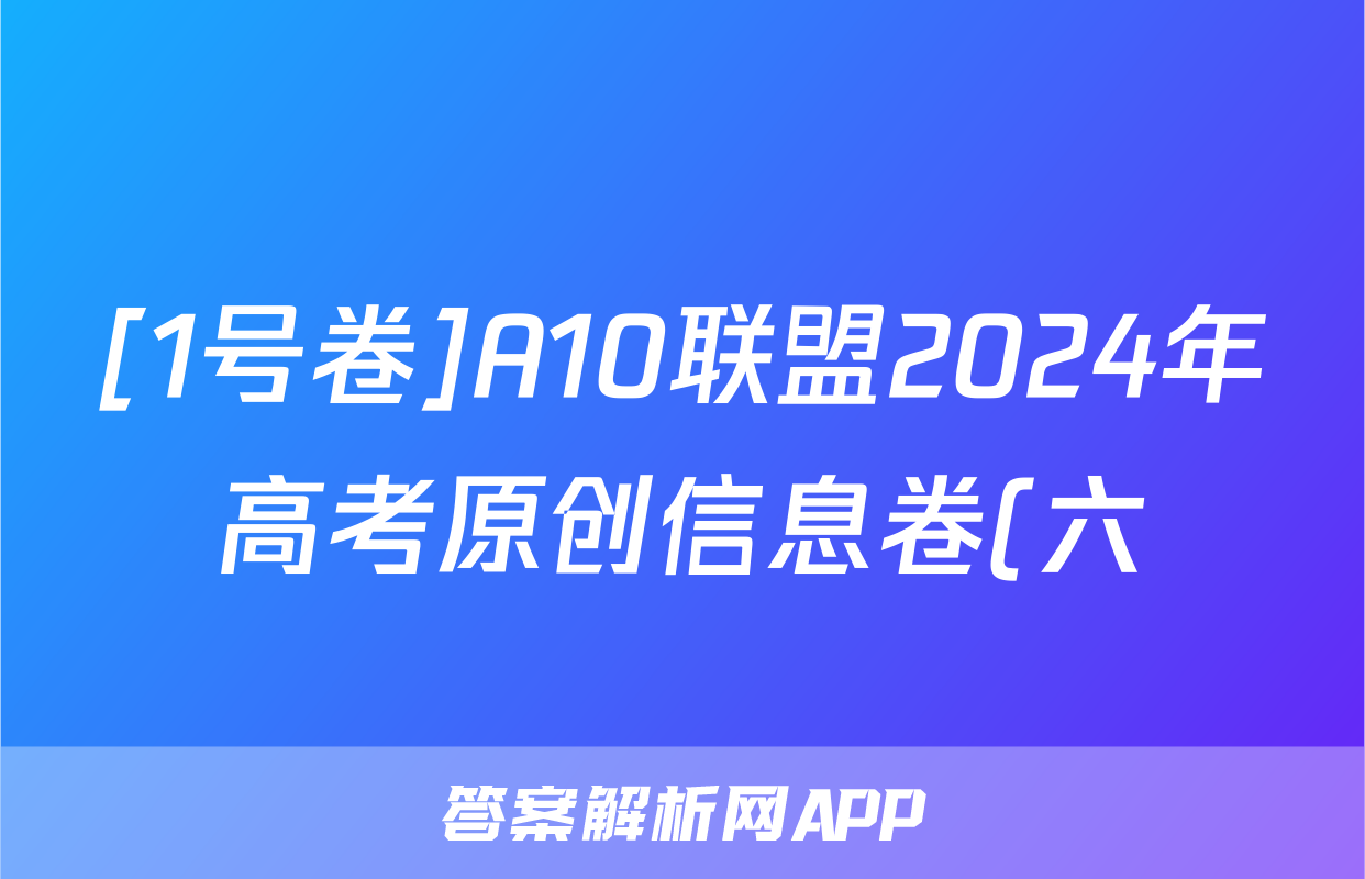 [1号卷]A10联盟2024年高考原创信息卷(六)6语文答案正在持续更新,目前2025-2026九师联盟答案网为大家整理了相关试题及答案,供大家查缺补漏,高效提升成绩。
