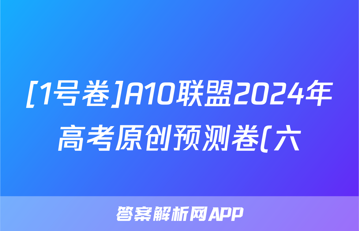 [1号卷]A10联盟2024年高考原创预测卷(六)6化学试题正在持续更新,目前2025-2026九师联盟答案网为大家整理了相关试题及答案,供大家查缺补漏,高效提升成绩。