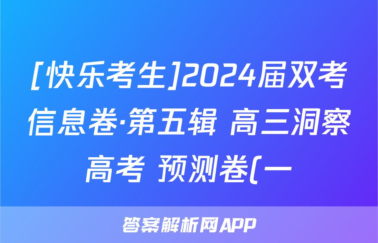 [快乐考生]2024届双考信息卷·第五辑 高三洞察高考 预测卷(一)1理科综合答案正在持续更新,目前2025-2026九师联盟答案网为大家整理了相关试题及答案,供大家查缺补漏,高效提升成绩。