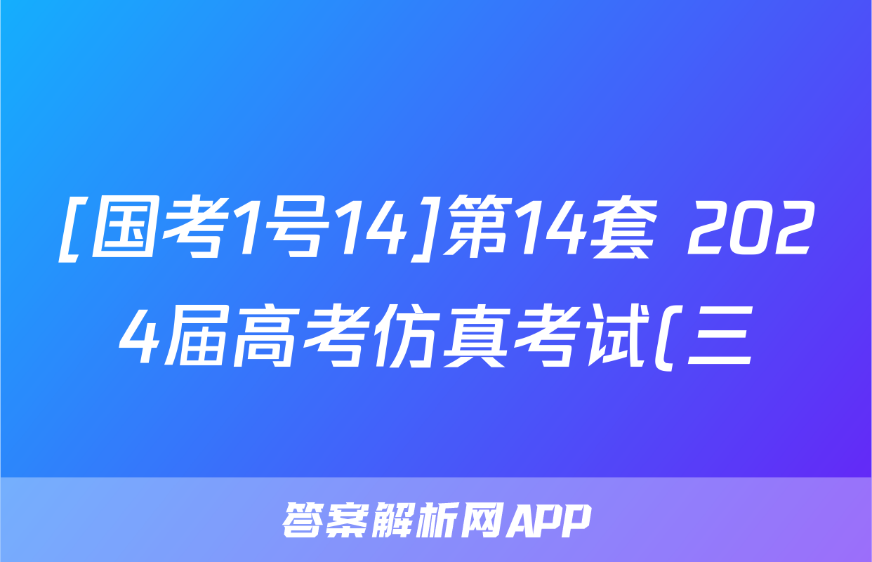 [国考1号14]第14套 2024届高考仿真考试(三)3理科综合答案正在持续更新,目前2025-2026九师联盟答案网为大家整理了相关试题及答案,供大家查缺补漏,高效提升成绩。