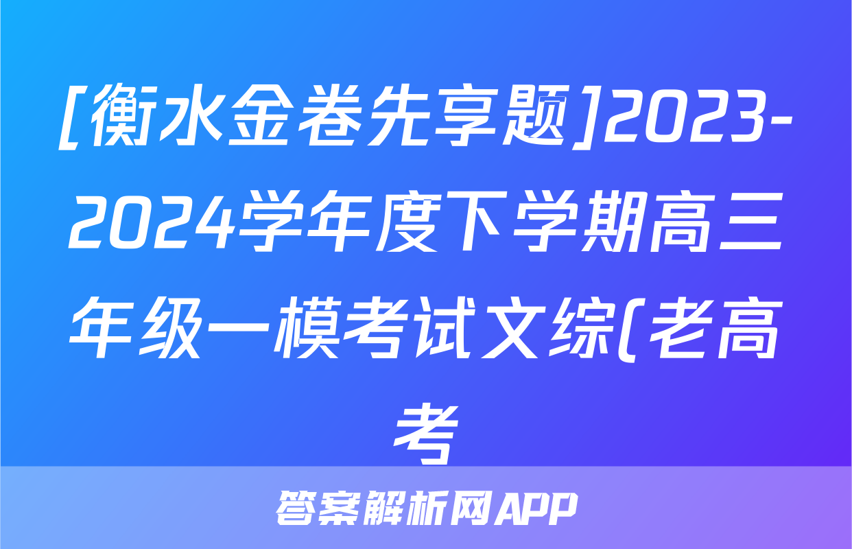 [衡水金卷先享题]2023-2024学年度下学期高三年级一模考试文综(老高考)试题正在持续更新,目前2025-2026九师联盟答案网为大家整理了相关试题及答案,供大家查缺补漏,高效提升成绩。