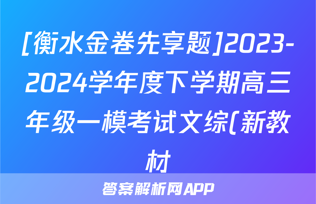 [衡水金卷先享题]2023-2024学年度下学期高三年级一模考试文综(新教材)试题正在持续更新,目前2025-2026九师联盟答案网为大家整理了相关试题及答案,供大家查缺补漏,高效提升成绩。