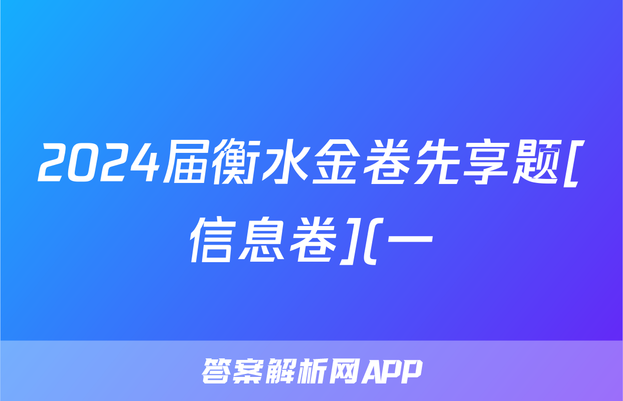 2024届衡水金卷先享题[信息卷](一)1数学(C)答案正在持续更新,目前2025-2026九师联盟答案网为大家整理了相关试题及答案,供大家查缺补漏,高效提升成绩。