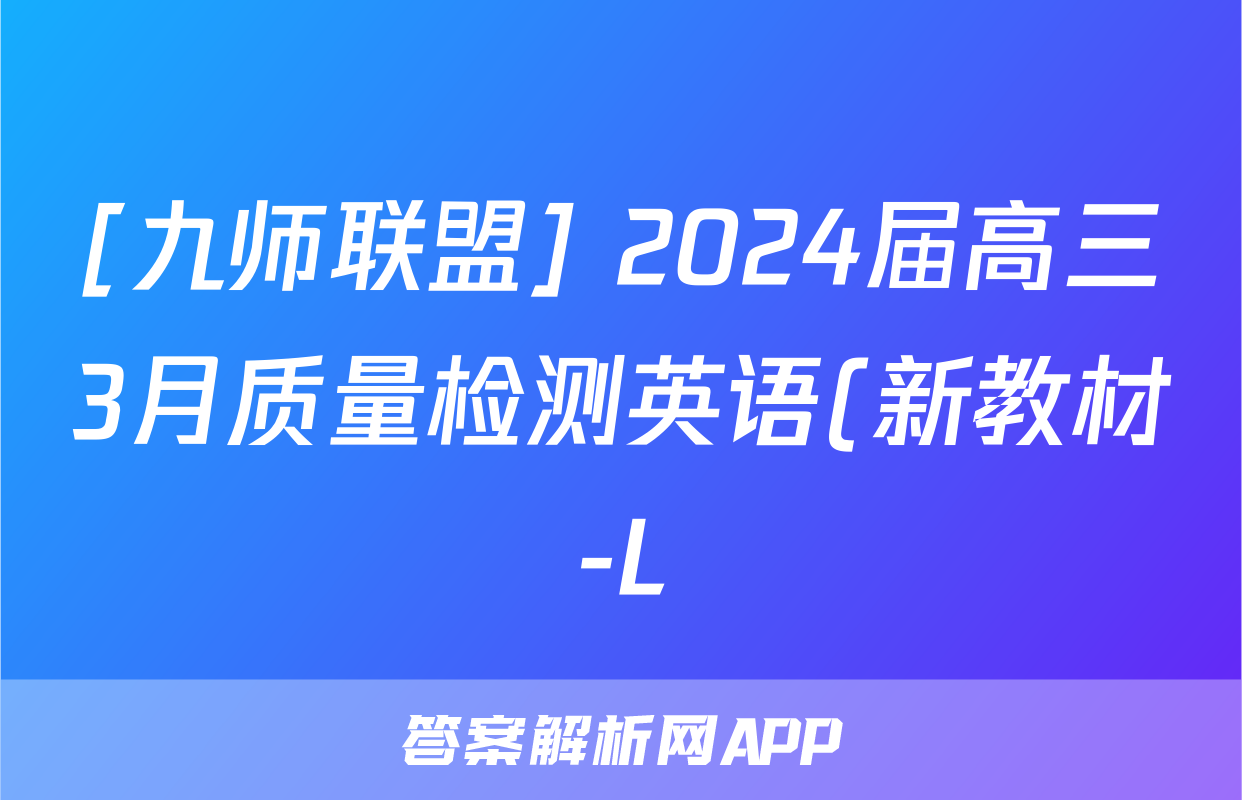[九师联盟] 2024届高三3月质量检测英语(新教材-L)答案正在持续更新,目前2025-2026九师联盟答案网为大家整理了相关试题及答案,供大家查缺补漏,高效提升成绩。