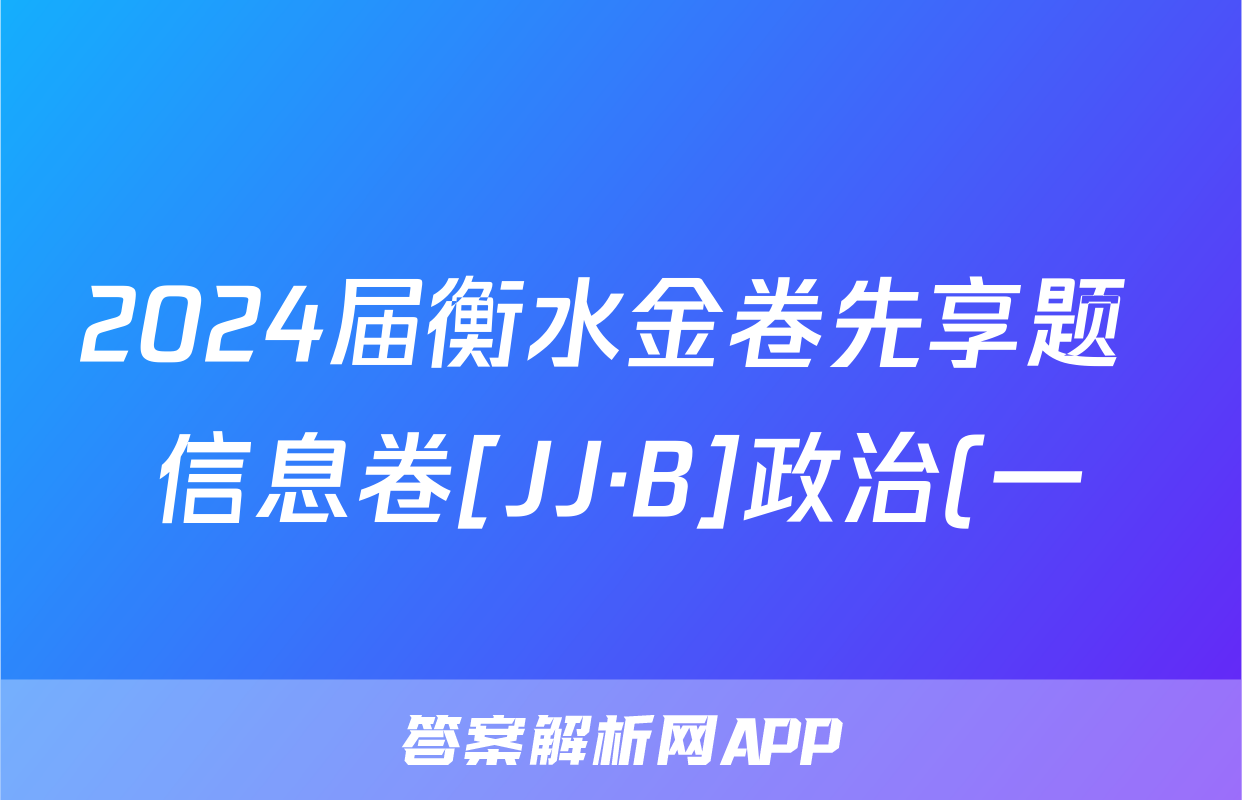 2024届衡水金卷先享题 信息卷[JJ·B]政治(一)1答案正在持续更新,目前2025-2026九师联盟答案网为大家整理了相关试题及答案,供大家查缺补漏,高效提升成绩。