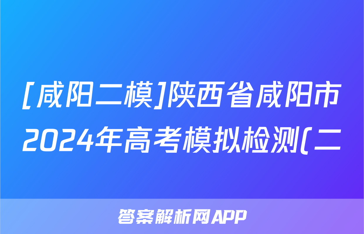 [咸阳二模]陕西省咸阳市2024年高考模拟检测(二)2语文试题正在持续更新,目前2025-2026九师联盟答案网为大家整理了相关试题及答案,供大家查缺补漏,高效提升成绩。