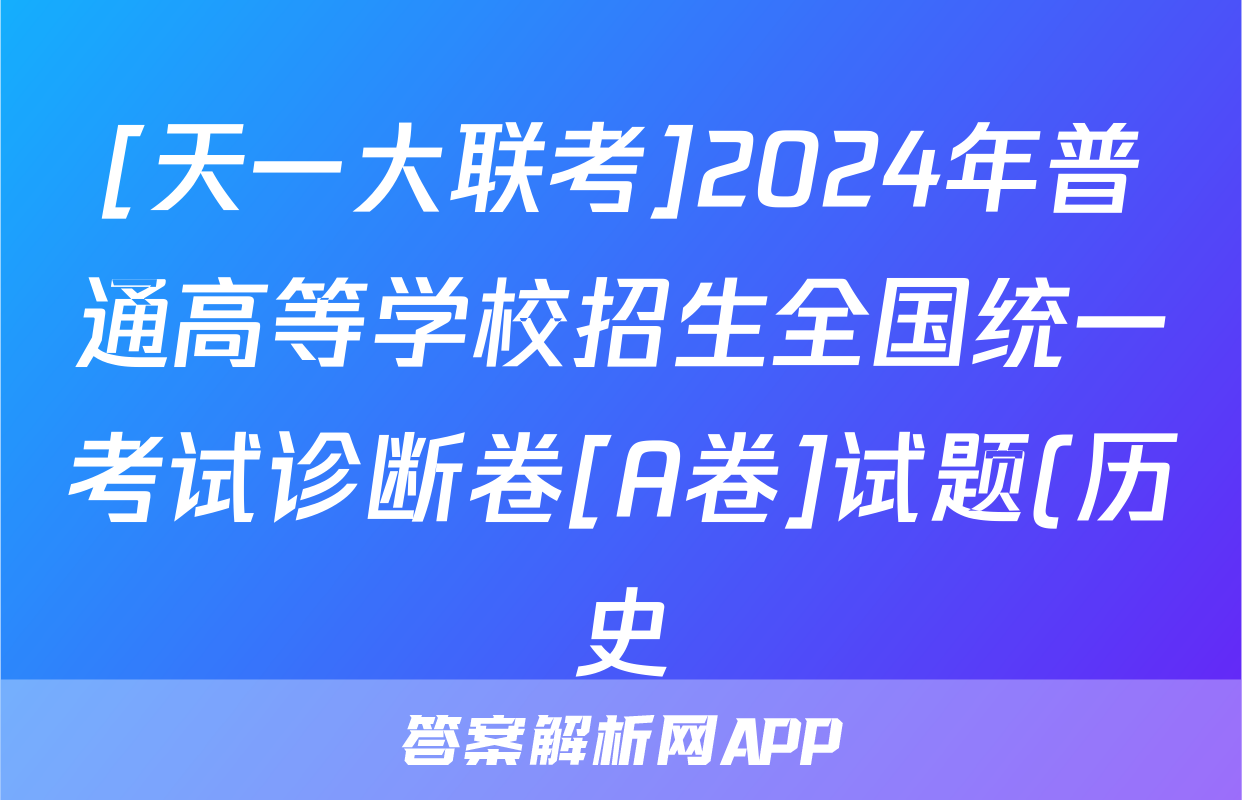 [天一大联考]2024年普通高等学校招生全国统一考试诊断卷[A卷]试题(历史)正在持续更新,目前2025-2026九师联盟答案网为大家整理了相关试题及答案,供大家查缺补漏,高效提升成绩。