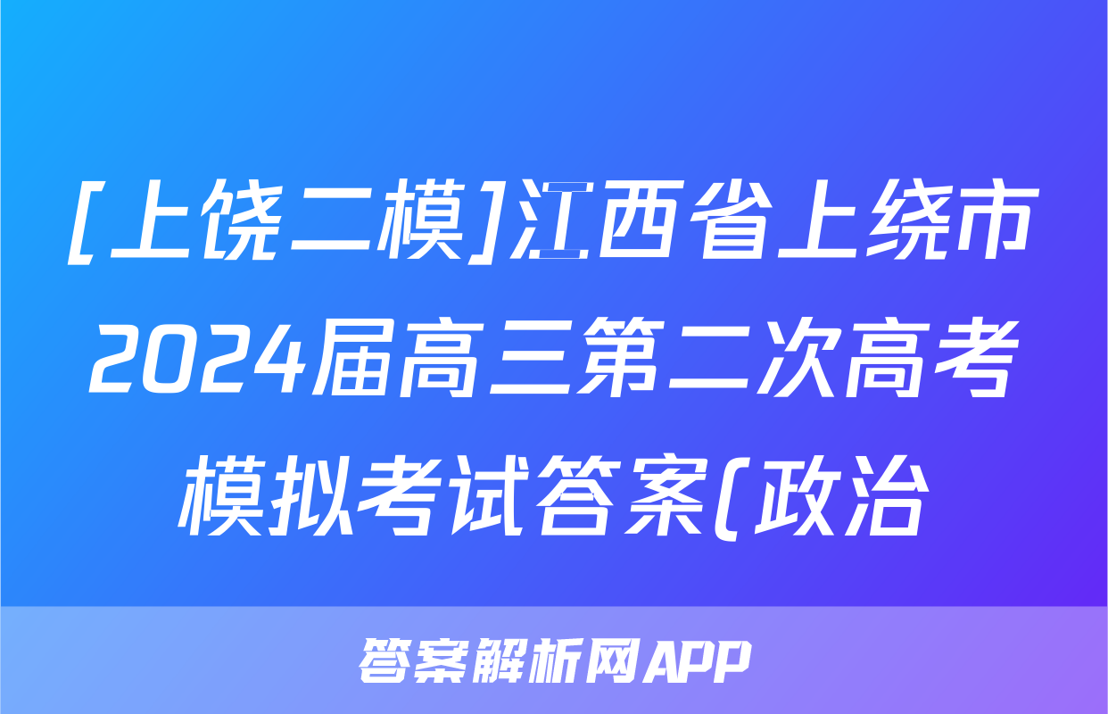 [上饶二模]江西省上绕市2024届高三第二次高考模拟考试答案(政治)正在持续更新,目前2025-2026九师联盟答案网为大家整理了相关试题及答案,供大家查缺补漏,高效提升成绩。