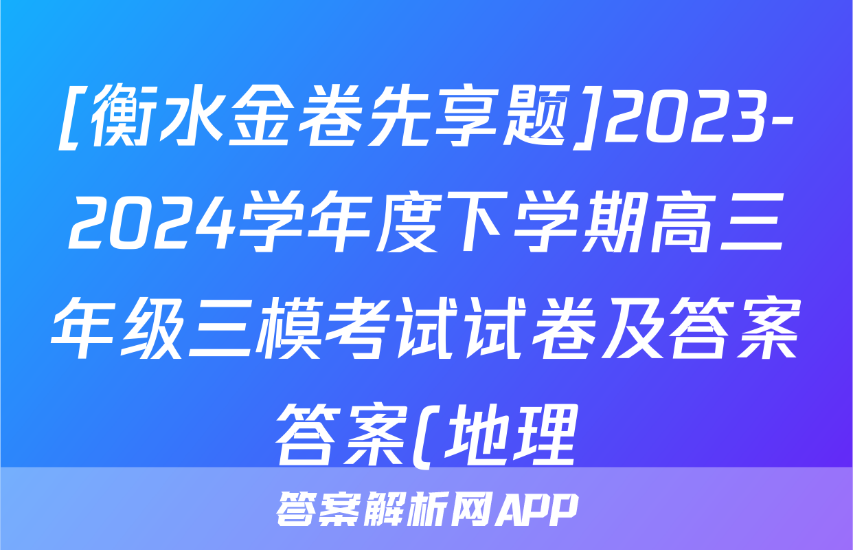 [衡水金卷先享题]2023-2024学年度下学期高三年级三模考试试卷及答案答案(地理)正在持续更新,目前2025-2026九师联盟答案网为大家整理了相关试题及答案,供大家查缺补漏,高效提升成绩。