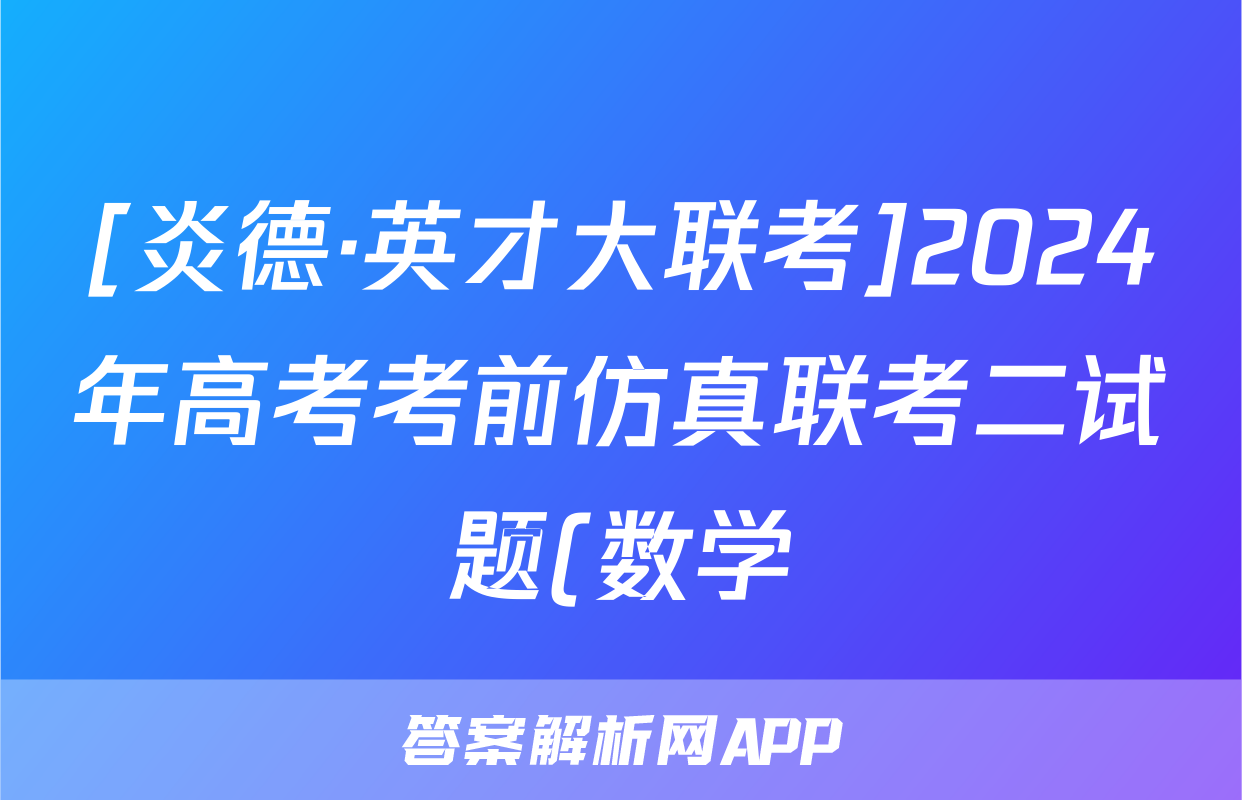 [炎德·英才大联考]2024年高考考前仿真联考二试题(数学)正在持续更新,目前2025-2026九师联盟答案网为大家整理了相关试题及答案,供大家查缺补漏,高效提升成绩。
