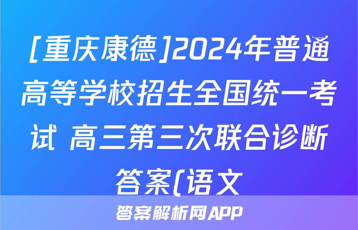 [重庆康德]2024年普通高等学校招生全国统一考试 高三第三次联合诊断答案(语文)正在持续更新,目前2025-2026九师联盟答案网为大家整理了相关试题及答案,供大家查缺补漏,高效提升成绩。