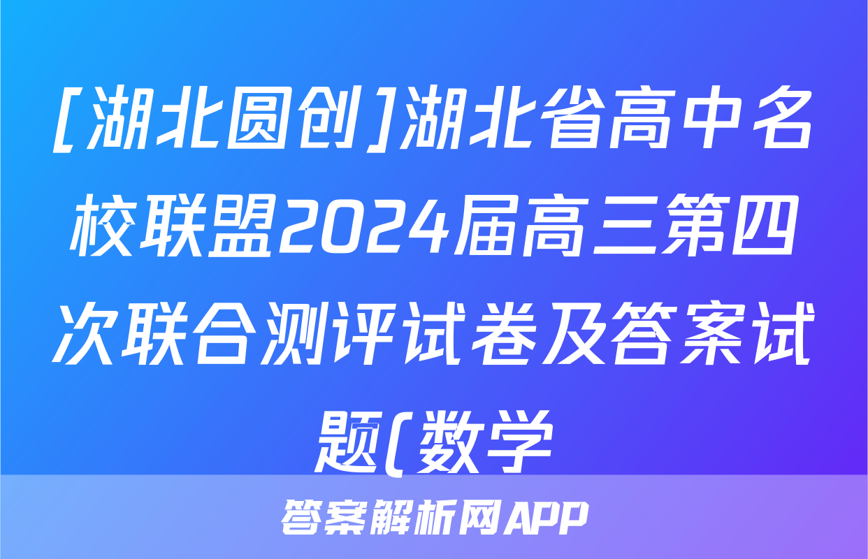 [湖北圆创]湖北省高中名校联盟2024届高三第四次联合测评试卷及答案试题(数学)正在持续更新,目前2025-2026九师联盟答案网为大家整理了相关试题及答案,供大家查缺补漏,高效提升成绩。
