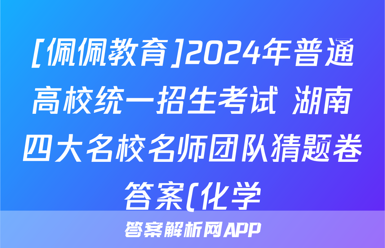 [佩佩教育]2024年普通高校统一招生考试 湖南四大名校名师团队猜题卷答案(化学)正在持续更新,目前2025-2026九师联盟答案网为大家整理了相关试题及答案,供大家查缺补漏,高效提升成绩。