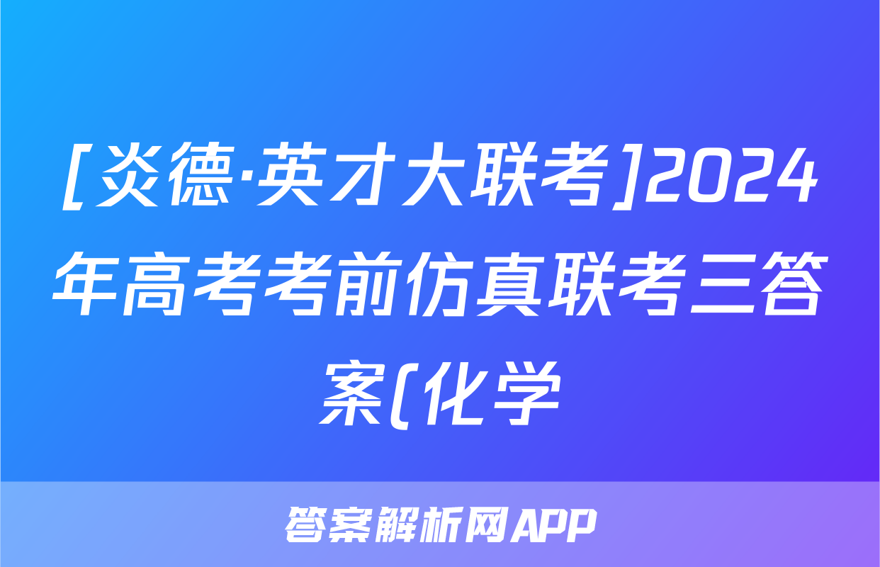 [炎德·英才大联考]2024年高考考前仿真联考三答案(化学)正在持续更新,目前2025-2026九师联盟答案网为大家整理了相关试题及答案,供大家查缺补漏,高效提升成绩。