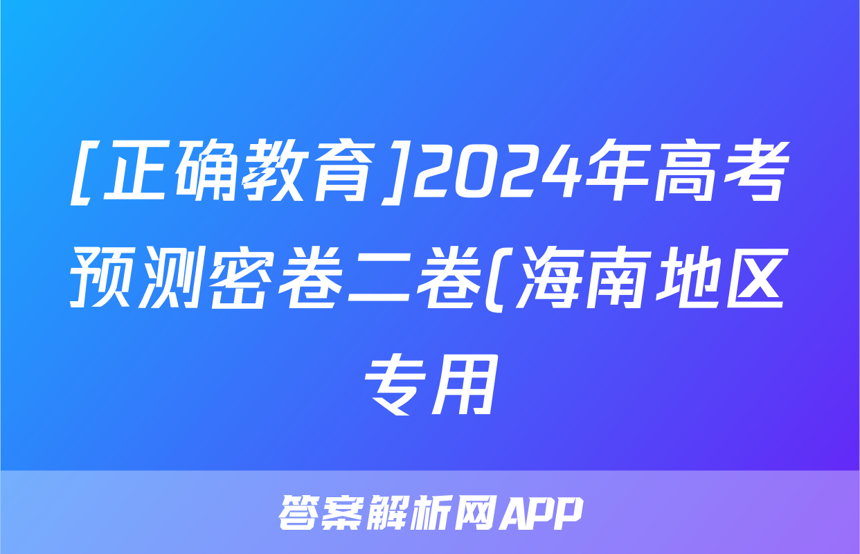 [正确教育]2024年高考预测密卷二卷(海南地区专用)地理(海南)试题正在持续更新,目前2025-2026九师联盟答案网为大家整理了相关试题及答案,供大家查缺补漏,高效提升成绩。