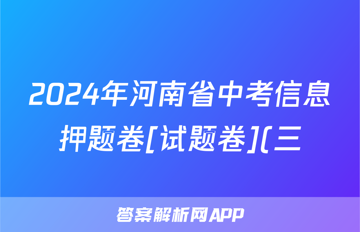 2024年河南省中考信息押题卷[试题卷](三)3试题(化学)正在持续更新,目前2025-2026九师联盟答案网为大家整理了相关试题及答案,供大家查缺补漏,高效提升成绩。