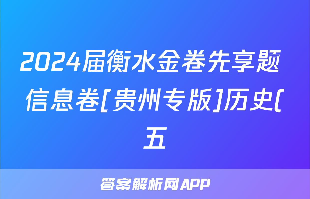 2024届衡水金卷先享题 信息卷[贵州专版]历史(五)5答案正在持续更新,目前2025-2026九师联盟答案网为大家整理了相关试题及答案,供大家查缺补漏,高效提升成绩。