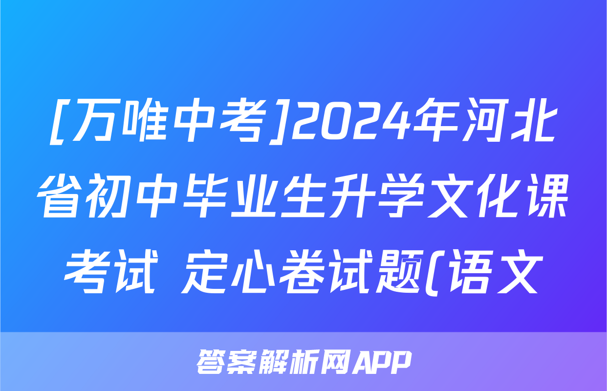 [万唯中考]2024年河北省初中毕业生升学文化课考试 定心卷试题(语文)正在持续更新,目前2025-2026九师联盟答案网为大家整理了相关试题及答案,供大家查缺补漏,高效提升成绩。
