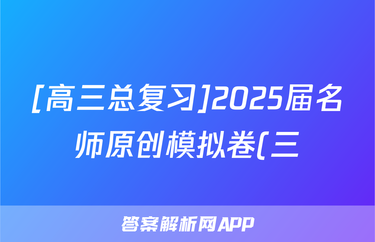 [高三总复习]2025届名师原创模拟卷(三)3历史(CQX5)答案正在持续更新,目前2025-2026九师联盟答案网为大家整理了相关试题及答案,供大家查缺补漏,高效提升成绩。
