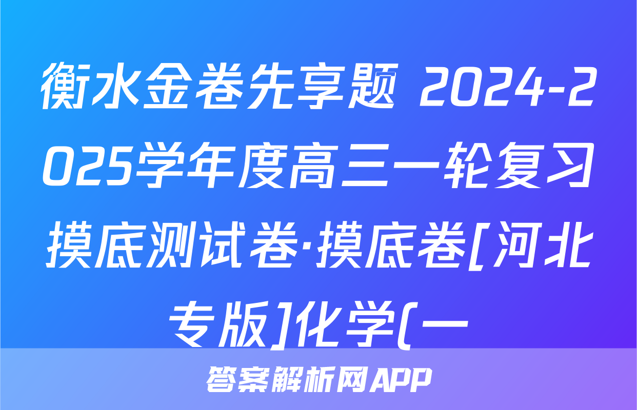 衡水金卷先享题 2024-2025学年度高三一轮复习摸底测试卷·摸底卷[河北专版]化学(一)1答案正在持续更新,目前2025-2026九师联盟答案网为大家整理了相关试题及答案,供大家查缺补漏,高效提升成绩。