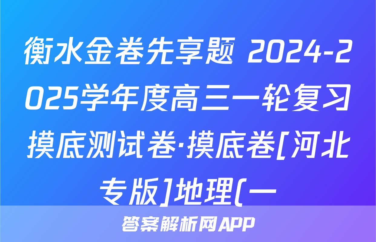 衡水金卷先享题 2024-2025学年度高三一轮复习摸底测试卷·摸底卷[河北专版]地理(一)1答案正在持续更新,目前2025-2026九师联盟答案网为大家整理了相关试题及答案,供大家查缺补漏,高效提升成绩。