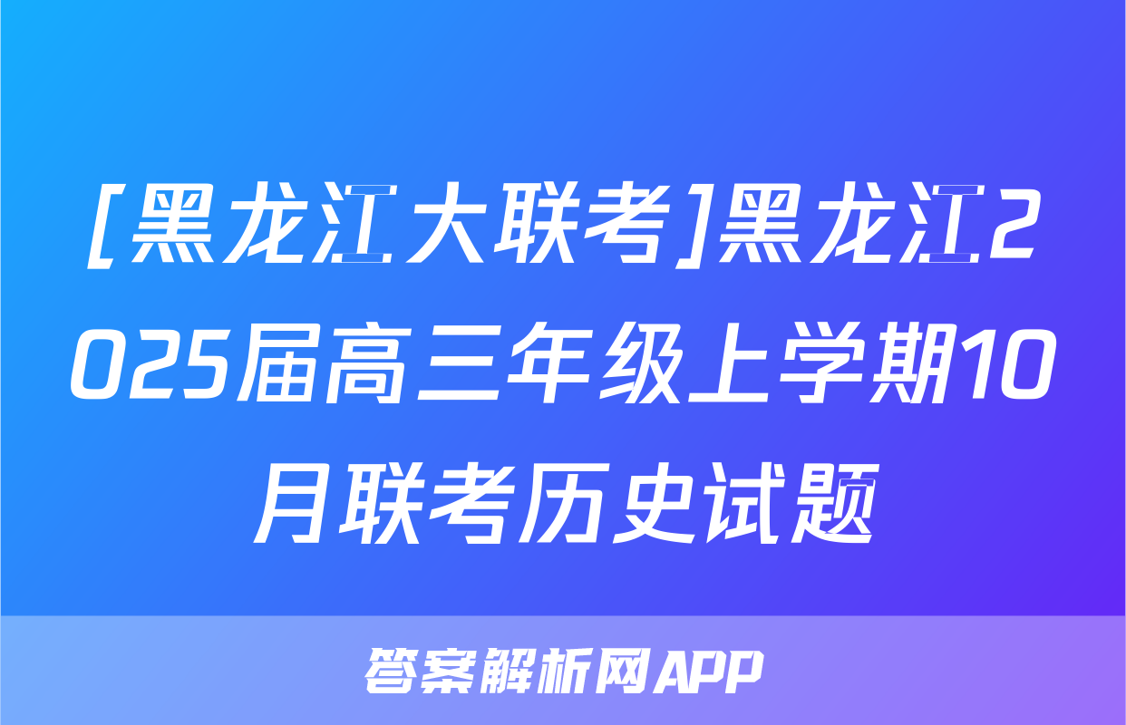 [黑龙江大联考]黑龙江2025届高三年级上学期10月联考历史试题正在持续更新,目前2025-2026九师联盟答案网为大家整理了相关试题及答案,供大家查缺补漏,高效提升成绩。