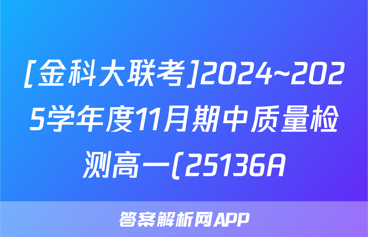[金科大联考]2024~2025学年度11月期中质量检测高一(25136A)化学-B试题正在持续更新,目前2025-2026九师联盟答案网为大家整理了相关试题及答案,供大家查缺补漏,高效提升成绩。