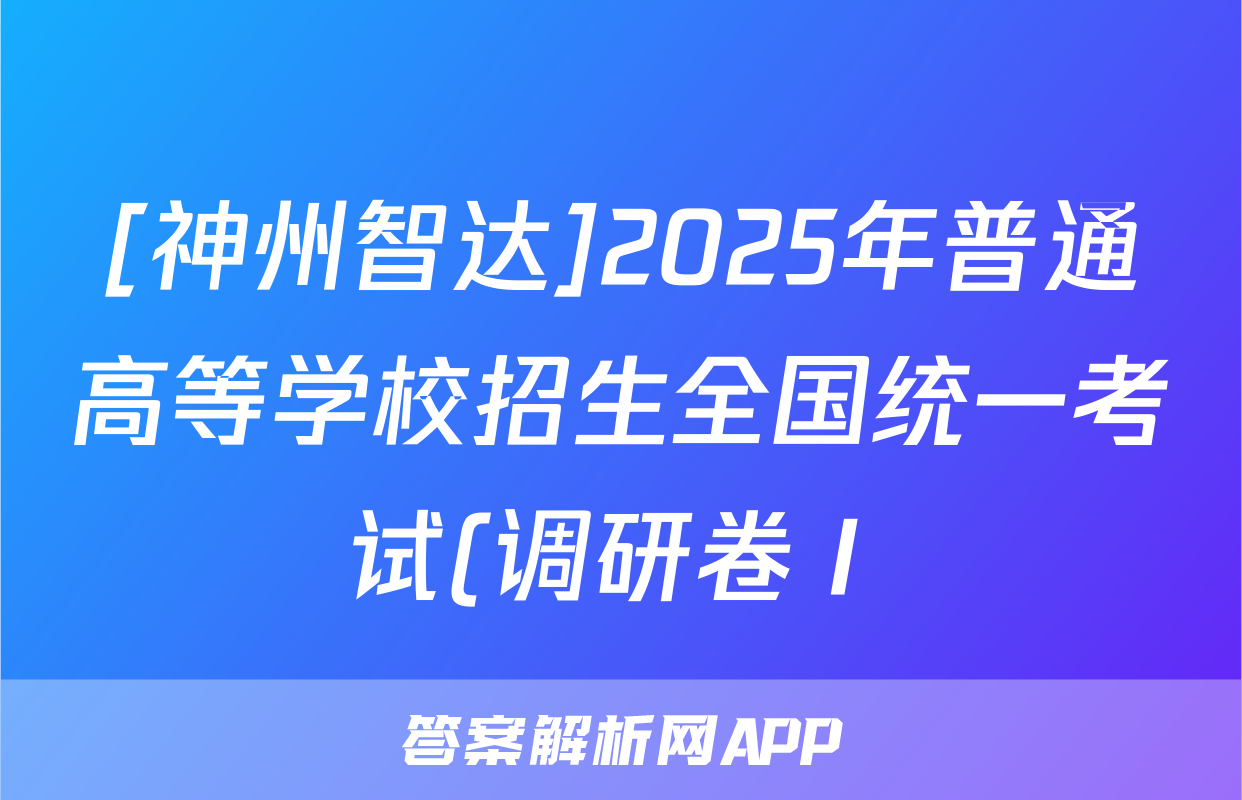[神州智达]2025年普通高等学校招生全国统一考试(调研卷Ⅰ)地理答案正在持续更新,目前2025-2026九师联盟答案网为大家整理了相关试题及答案,供大家查缺补漏,高效提升成绩。