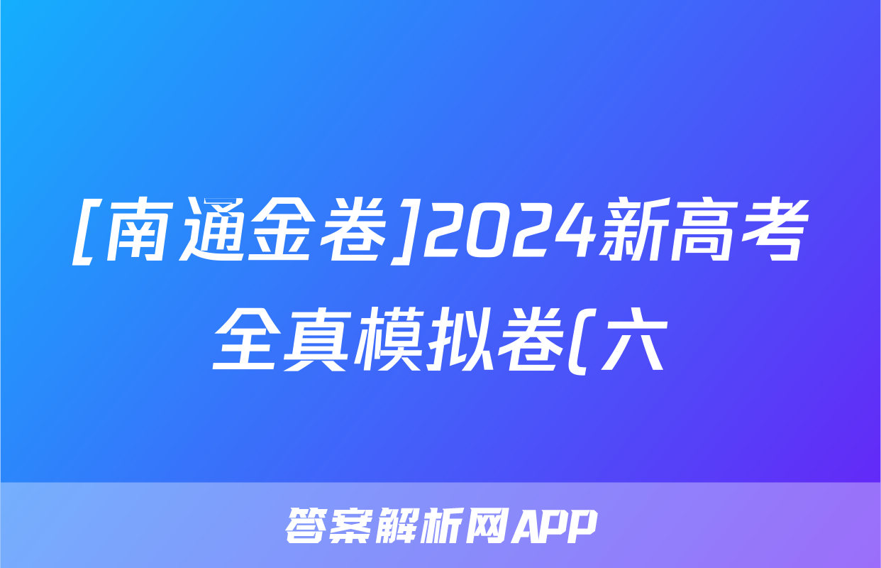 [南通金卷]2024新高考全真模拟卷(六)6生物试题正在持续更新,目前2025-2026九师联盟答案网为大家整理了相关试题及答案,供大家查缺补漏,高效提升成绩。