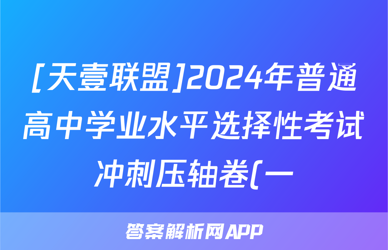 [天壹联盟]2024年普通高中学业水平选择性考试冲刺压轴卷(一)1试题(历史)正在持续更新,目前2025-2026九师联盟答案网为大家整理了相关试题及答案,供大家查缺补漏,高效提升成绩。