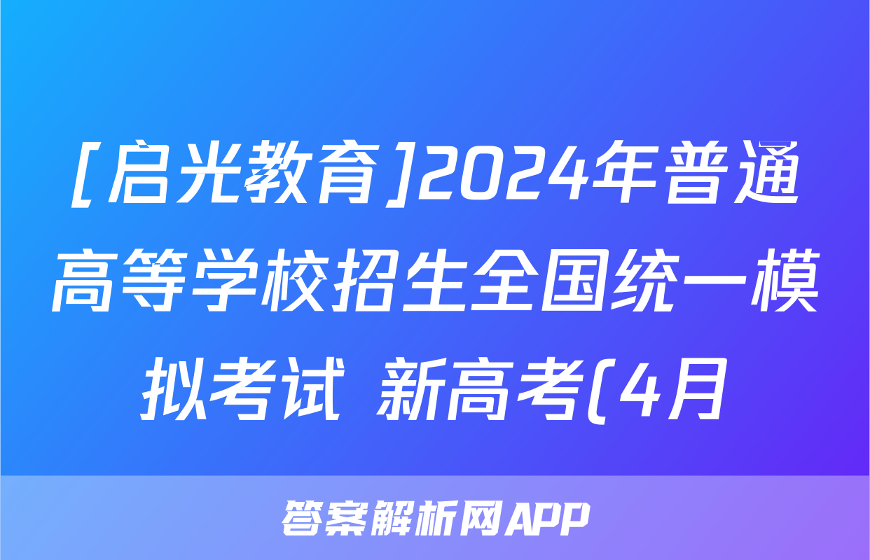 [启光教育]2024年普通高等学校招生全国统一模拟考试 新高考(4月)答案(政治)正在持续更新,目前2025-2026九师联盟答案网为大家整理了相关试题及答案,供大家查缺补漏,高效提升成绩。