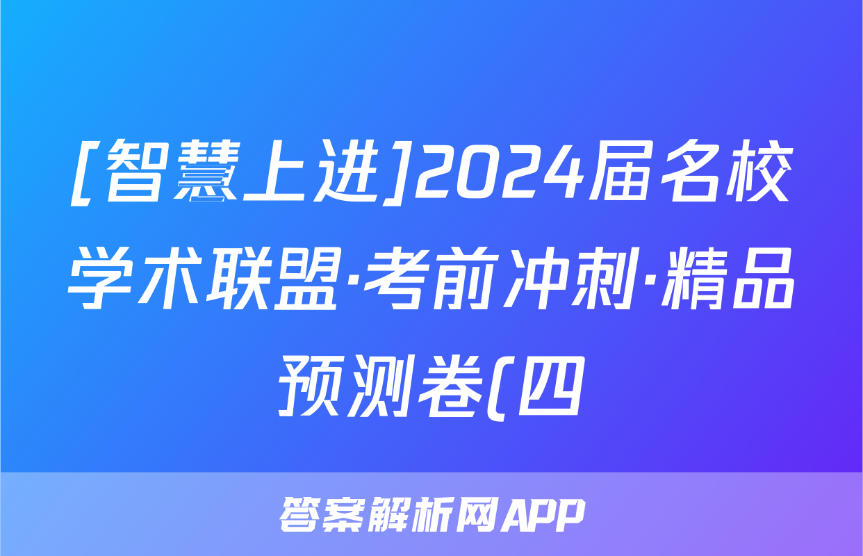 [智慧上进]2024届名校学术联盟·考前冲刺·精品预测卷(四)4试卷及答案试题(语文)正在持续更新,目前2025-2026九师联盟答案网为大家整理了相关试题及答案,供大家查缺补漏,高效提升成绩。