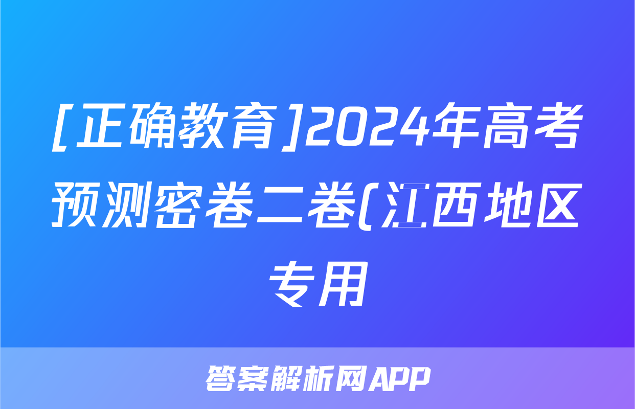 [正确教育]2024年高考预测密卷二卷(江西地区专用)历史(江西)试题正在持续更新,目前2025-2026九师联盟答案网为大家整理了相关试题及答案,供大家查缺补漏,高效提升成绩。