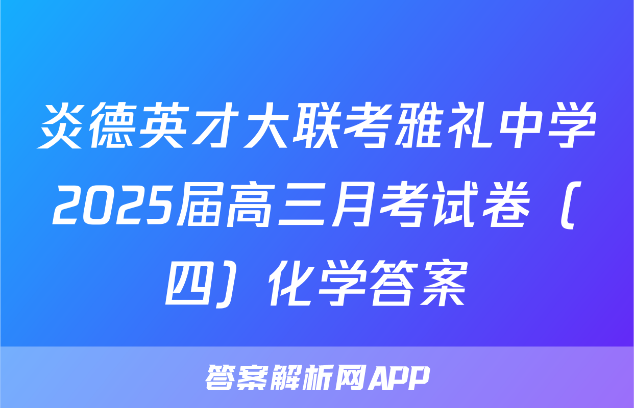 炎德英才大联考雅礼中学2025届高三月考试卷(四)化学答案正在持续更新,目前2025-2026九师联盟答案网为大家整理了相关试题及答案,供大家查缺补漏,高效提升成绩。