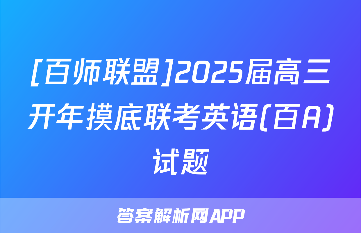 [百师联盟]2025届高三开年摸底联考英语(百A)试题正在持续更新,目前2025-2026九师联盟答案网为大家整理了相关试题及答案,供大家查缺补漏,高效提升成绩。