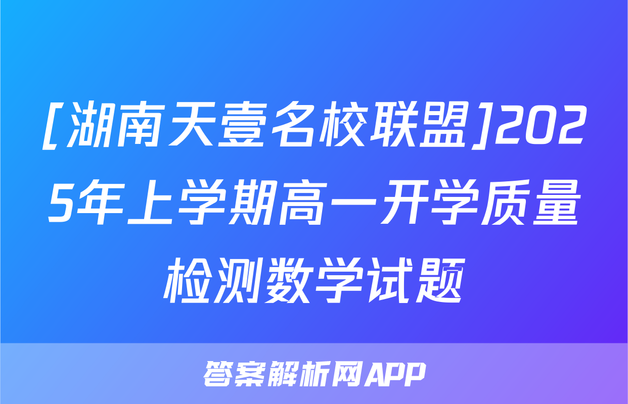 [湖南天壹名校联盟]2025年上学期高一开学质量检测数学试题正在持续更新,目前2025-2026九师联盟答案网为大家整理了相关试题及答案,供大家查缺补漏,高效提升成绩。