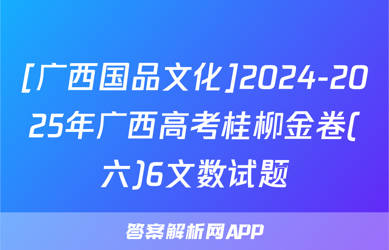 [广西国品文化]2024-2025年广西高考桂柳金卷(六)6文数试题正在持续更新,目前2025-2026九师联盟答案网为大家整理了相关试题及答案,供大家查缺补漏,高效提升成绩。