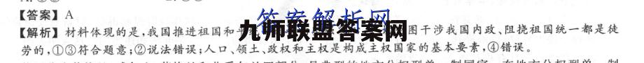 【答案】A【解析】材料体现的是,我国推进祖国和平统一进程的坚强决心,一切企图干涉我国内政、阻挠祖国统一都是徒劳的,①③符合题意;②说法错误;人口、领土、政权和主权是构成主权国家的基本要素,④错误。