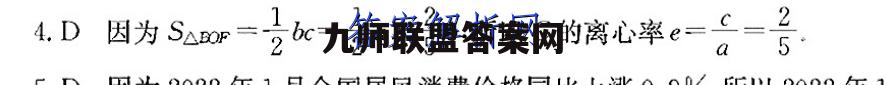 4.D因为Sa=合c=2aX号6,所以C的离心率e=&=号a5、0