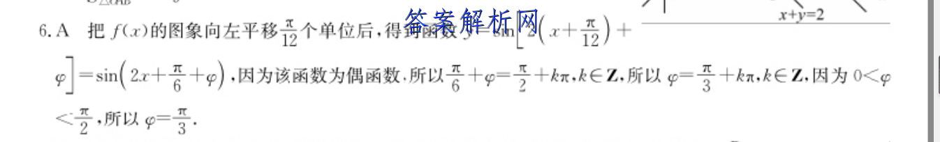 6.A把fx)的图象向左平移登个单位后,得到函数y=sm2(x+吾)十x+y=29]=sim(2x十晋+),因为该函数为偶函数所以晋十g-号+x,k∈Z.所以g=吾+ka,k∈Z.因为0<9