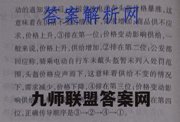 4C解析)公安部交管局”一盔一带”安全守护行动的通知发布后,全国各地电动车头盔价格暴涨,这意味着在供给不变的情况下,需求增加,商品供不应求,价格上升,③排在第一位:价格变动影响供给,一般来说,价格上升,供给增加,②排在第二位,公安部回应称,骑乘电动自行车未戴头盔暂未列人处罚范围,头盔价格应声而下,这意味着供给不变的情况下,需求减少,价格下降,④排在第三位;价格变动影响供给,一般来说,价格下降,供给减少,①排在第四位,正确传导顺序是③一②④一,①。小