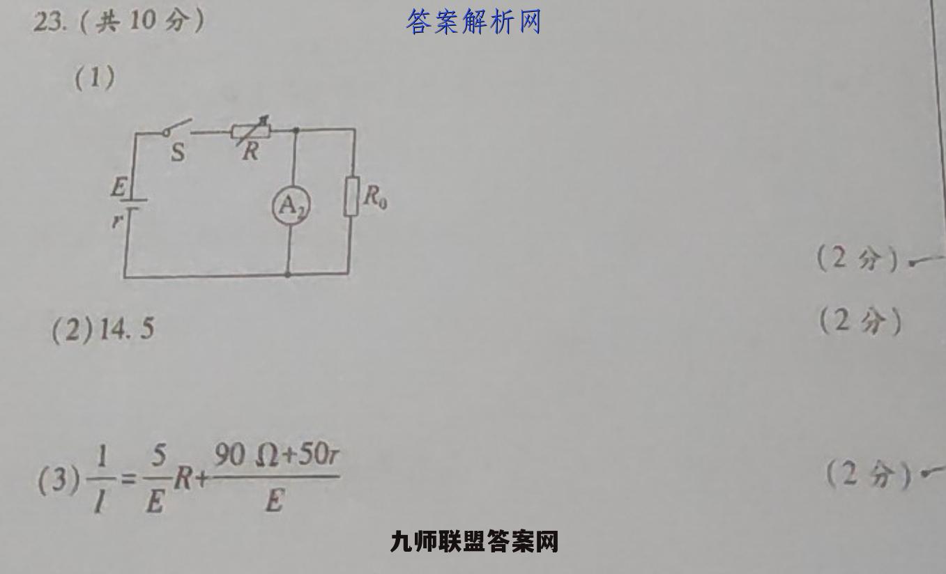 23.(共10分)(1)E(2分)一(2)14.5(2分)、1_5m902+50r(3)7ER+E(2分)(5)3.5(1分)301分)(6)等于〔2分)