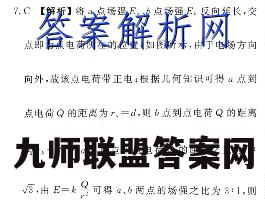 ?,C【解析】将4点场强E,、方点场强E、反向延长,交点却为点电荷所在的位置,如阁所示,由丁电场方向向外,故该点电荷带正电·根据儿可识可得“点到点电荷Q的五离为r、=,则山点到点电荷Q的矩离为s一3d,.b两点到点电荷Q的生离之比为1:,后,出E=k9可得:6两点的场强之比为8:1,则B一号,放C项正确,A,BD项错误,E60