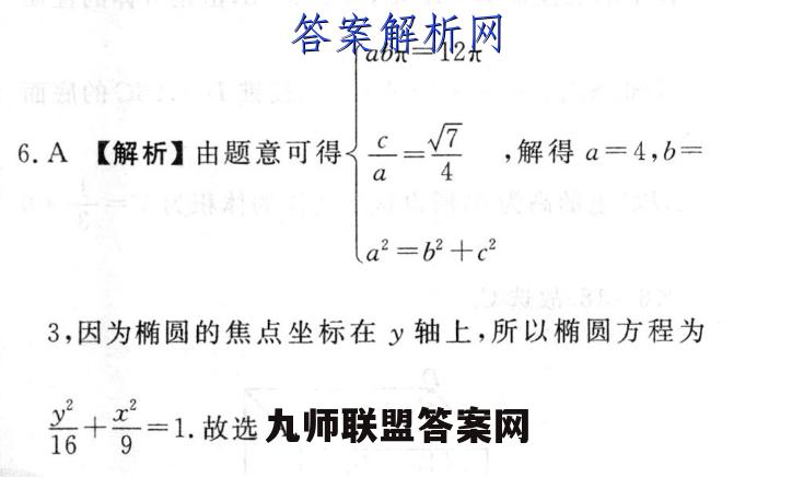 abπ=12π6.A【解析】由题意可得,解得a=4,b=a4a2=b2+c23,因为椭圆的焦点坐标在y轴上,所以椭圆方程为=1.故选A.16