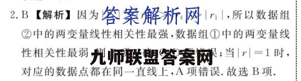 2.B【解析】因为2>r3>r4>r1,所以数据组②中的两变量线性相关性最强,数据组①中的两变量线性相关性最弱,则B项正确,C,D项错误;当r=1时,对应的数据点都在同一直线上,A项错误.故选B项.